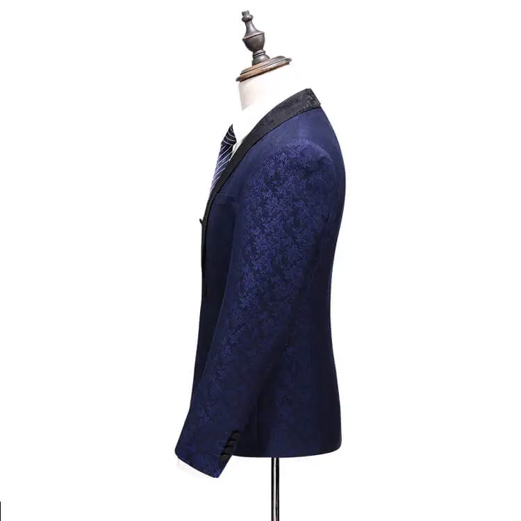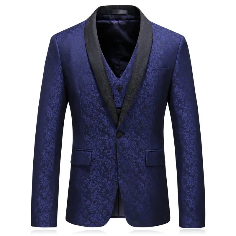 Drop Shipping Luxury Single Breasted Tuxedo Men's Three-Piece Suit Dark Blue Worsted Fabric Breathable Zipper Fly Front Style